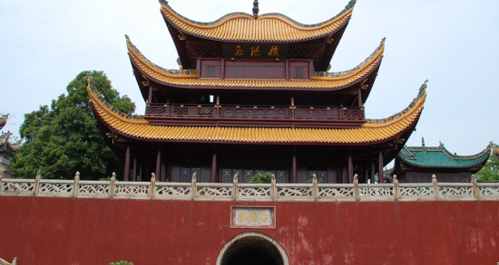 閱軍樓在兩晉、南北朝時(shí)被稱為巴陵城樓,到唐朝時(shí)期方始稱岳陽(yáng)樓。