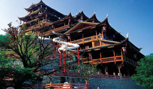 九重天世襲堂是土家風(fēng)情園的精華和靈魂所在。該建筑由土家民間藝人李宏進(jìn)設(shè)計(jì),依80度陡坡而建,高48米,共9重12層,整個(gè)樓房全部用木栓連接,沒有一顆鐵釘,堪稱土家族建筑史上的奇跡。2002年9 月22日,九重天吊腳樓被載入世界吉尼斯世界紀(jì)錄,認(rèn)定其為目前中國(guó)最大、最高、最完美的木質(zhì)結(jié) 土家風(fēng)情園構(gòu)吊腳樓。